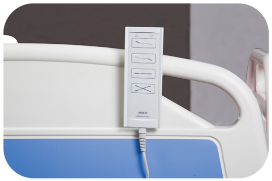 该床的的整体升降、倾斜、背板升降均由电动控制,可选配手控或脚控进行操作,操作方便,灵活。